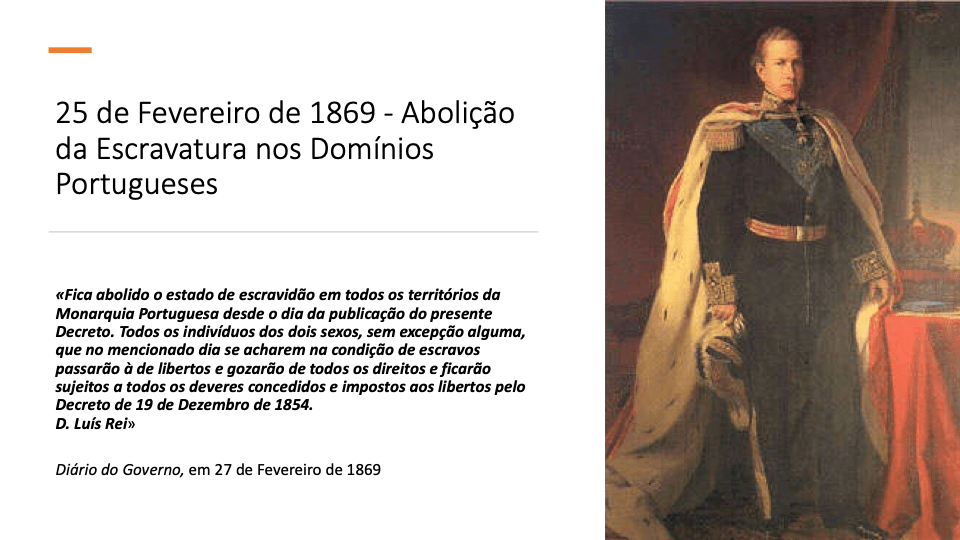 25 de fevereiro de 1869, publicação do decreto que aboliu o estado de escravidão em todos os territórios da monarquia portuguesa.