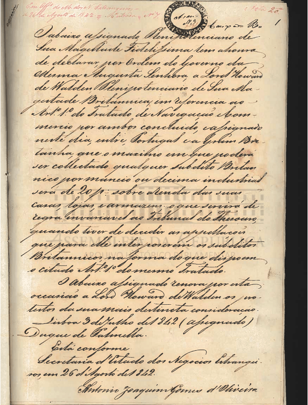 Notas do Tratado de Comércio e Navegação entre Portugal e Inglaterra – 1842