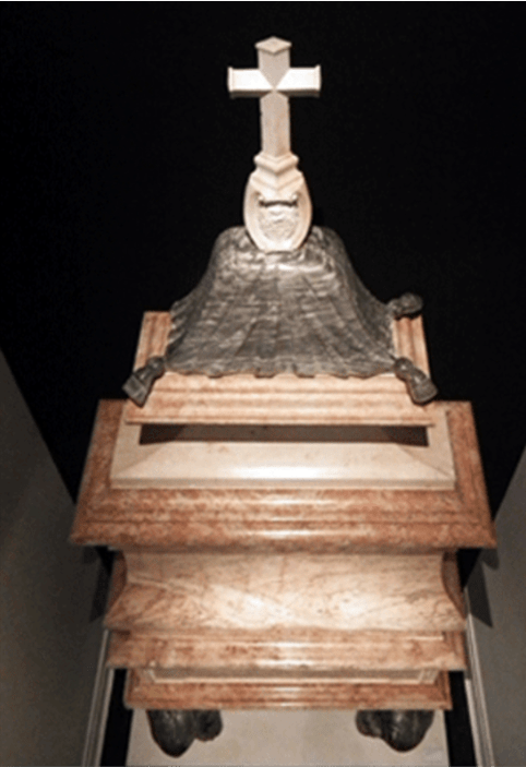 Os ossos são depositados no túmulo, que a sua mulher mandou construir, na Capela-Mor, do lado do Evangelho[9].
