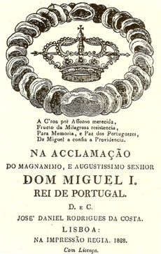 [1] Decreto de 16 de junho de 1832. Apud LOUSADA, Maria Alexandre – O miguelismo (1828-1834): o discurso político e o apoio da nobreza titulada. Provas de aptidão pedagógica e capacidade científica apresentadas na Faculdade de Letras da Universidade de Lisboa. Trabalho de síntese. Lisboa: FL-UL, 1987, p. 28.