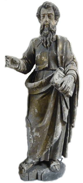 A outra escultura de vulto é um S. Paulo, e que apresenta os mesmos problemas na conservação. O estofo encontra-se muito desgastado, em tons vermelho e verde e com alguns vestígios de policromia, provavelmente floral e geométrica, com desenho de linha a dourado. Esta imagem parece ter sido repintada, pelo menos nas zonas sem estofo.