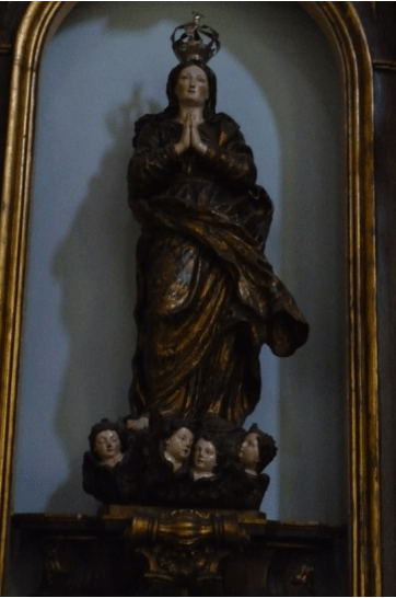 Autor: Desconhecido, trabalho português Datação: séc. XVII d.C. Dimensões: – Altura: 115 cm – Largura: 33 cm – Profundidade: 40 cm Materiais: – Madeira Técnicas: – Dourado – Estofado – Policromado – Escultura